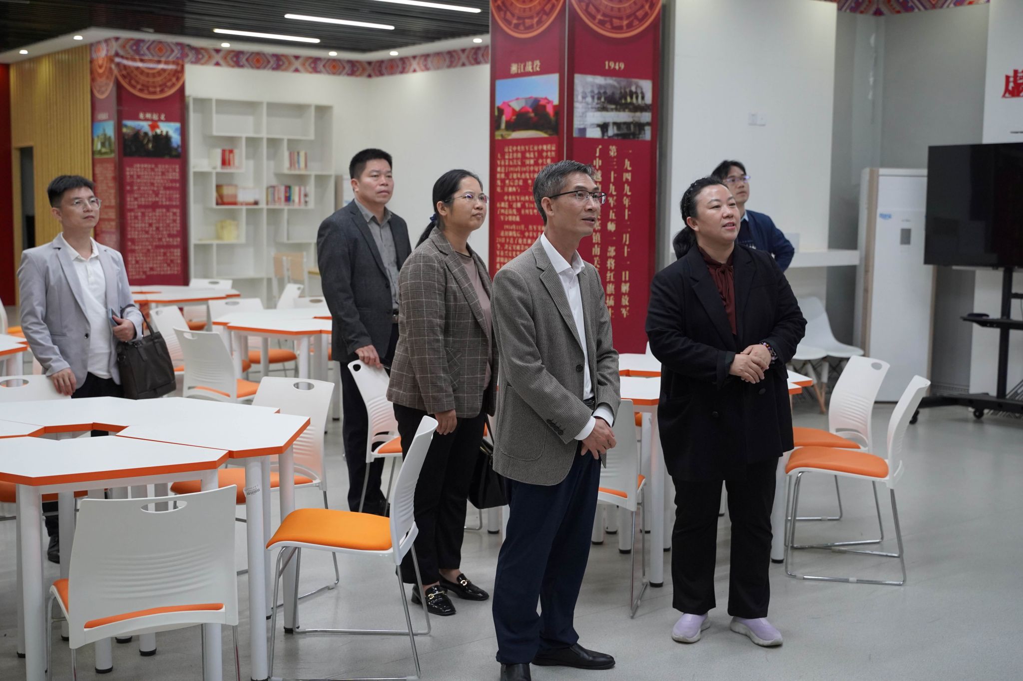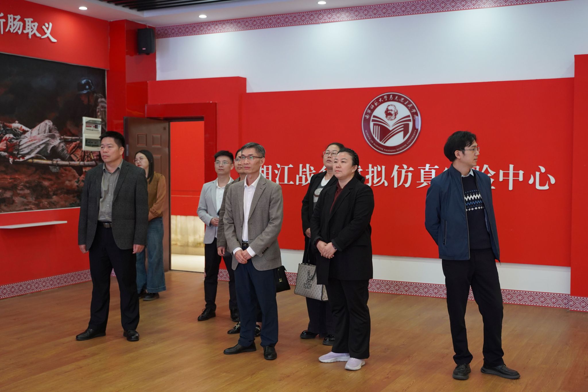 来访的教师们先后参观了马克思主义理论教育广场、党史育人画廊、科学社会主义发展史教育馆及广西新时代爱国主义教育虚拟体验中心、湘江战役虚拟仿真实验中心等特色文化育人教学场所。