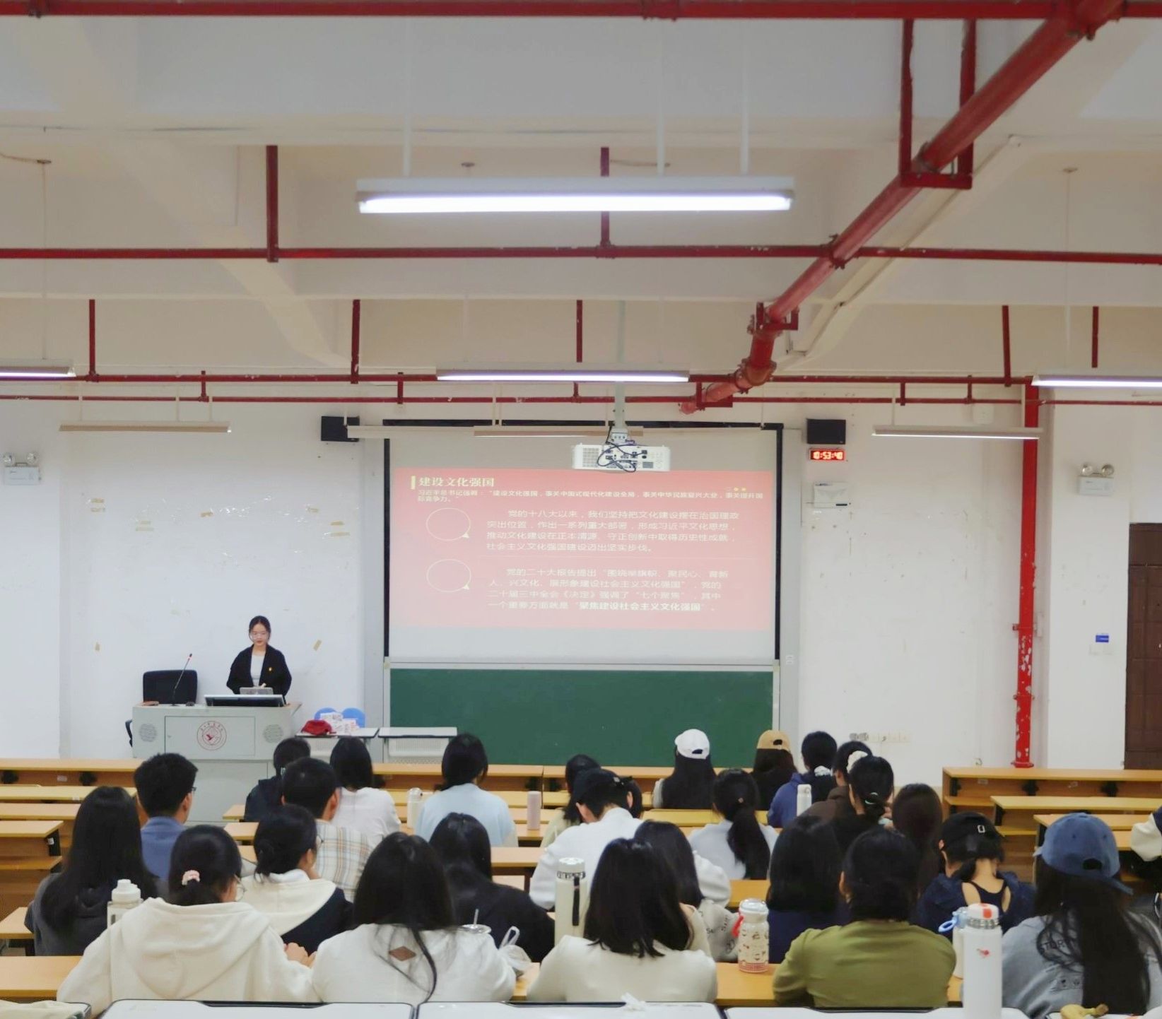一场场生动讲解,一个个多元主题,让本次团课活动亮点纷呈、特色鲜明。其中,谢雨欣、黄诗容主讲的“中非携手促发展,共绘命运共同体”团课,注重引导同学们拓宽国际视野;陆海荣、陶晶晶带来的“青春逐光‘十五五’,砥砺奋进新征程”团课,通过鲜活案例阐释青年学子在“十五五”期间面临的机遇与挑战;覃椿晖、梁静怡主讲的“文脉赓续新征程,青春执笔写华章”团课,通过文物典籍展示与青年文化创新故事,让传统文化生动可感,有效激发了大家的文化自信;李佳璇、刘泳秀围绕“全民全运大湾区,同心同圆中国梦”展开分享,以运动健儿的拼搏故事传递正能量,点燃同学们的情感共鸣;蒙洋洋、农冬宁主讲的“‘四个自信’筑根基,青春建功正当时”团课,系统诠释“四个自信”核心内涵,夯实了同学们的思想根基;谢楷钰、黄玉秀主讲的“廉洁‘微’课堂,青春正能量”团课,结合生活中的微案例分享廉洁心得,既发人深省又实用易懂;梁秋芳、宋佳欣则聚焦“践行网络文明,规范你我言行”,在分享中结合青年日常网络场景解读文明准则,兼具针对性与实用性。