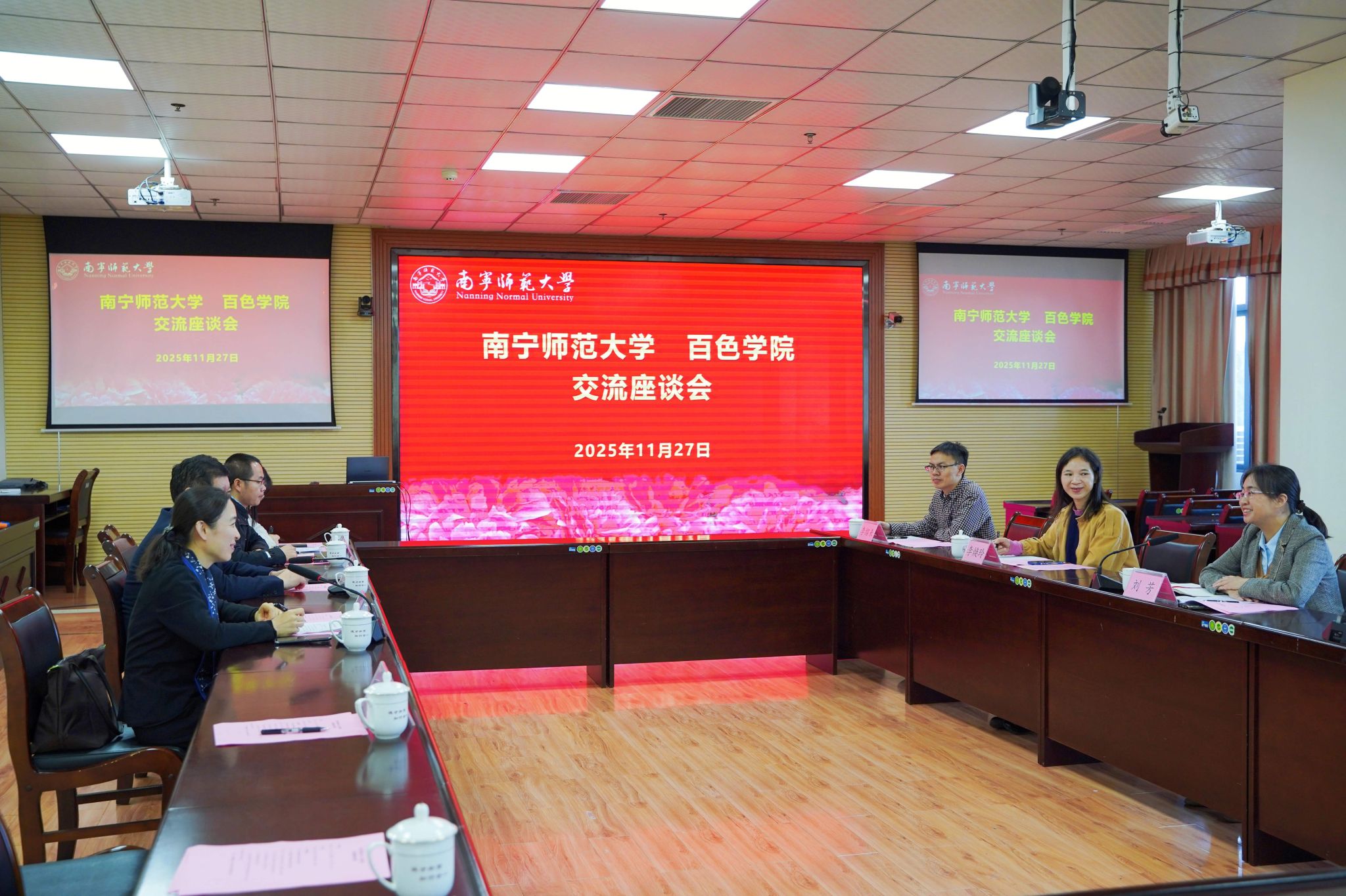交流座谈会上,唐荣双首先详细介绍了南宁师范大学的发展历程与办学成就,她表示百色学院在传承红色基因、开展革命传统教育方面优势独特,期待以此次交流为契机深化两校多领域合作。刘芳介绍百色学院的办学历史与发展规划的相关情况,她表示南宁师范大学在思政教育融入课上课下、信息化技术应用等方面的经验值得深入学习,此次到访旨在取经交流,推动本校思政工作高质量发展。