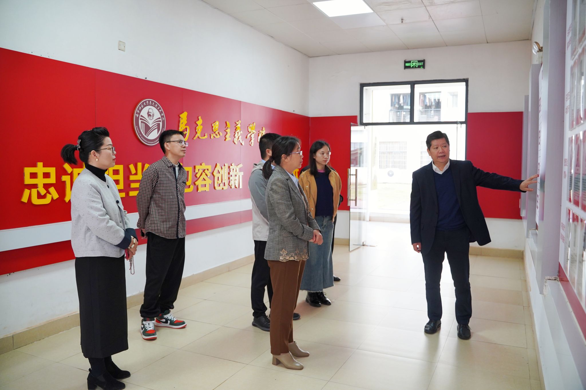 刘芳一行还实地走访我院马克思主义理论教育广场、虚拟仿真实验室等阵地。此次交流座谈既为两校搭建高效沟通的桥梁,促进思政育人经验分享互鉴,更推动片区思政协同发展,为探索新时代高校思政工作新模式奠定坚实基础。