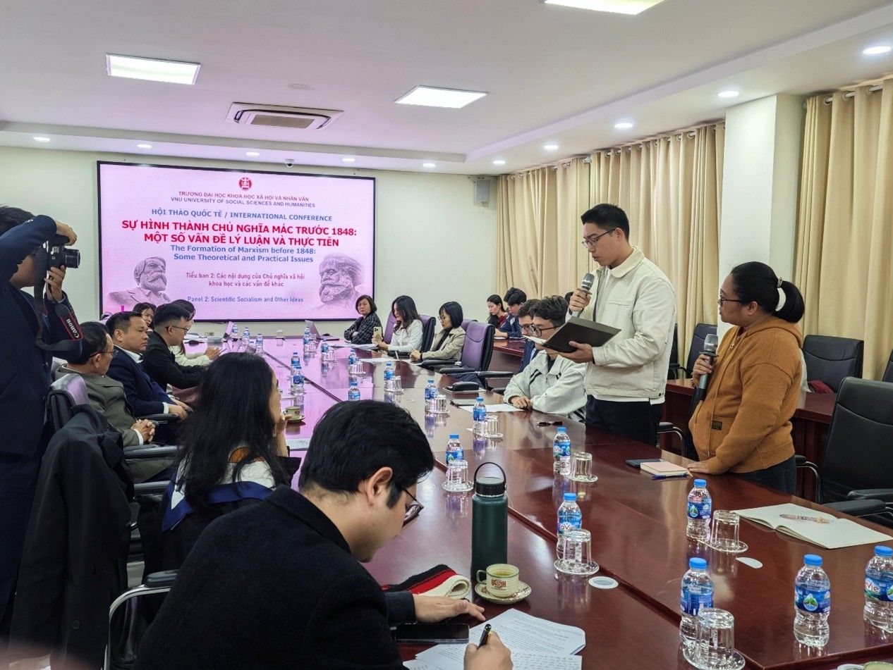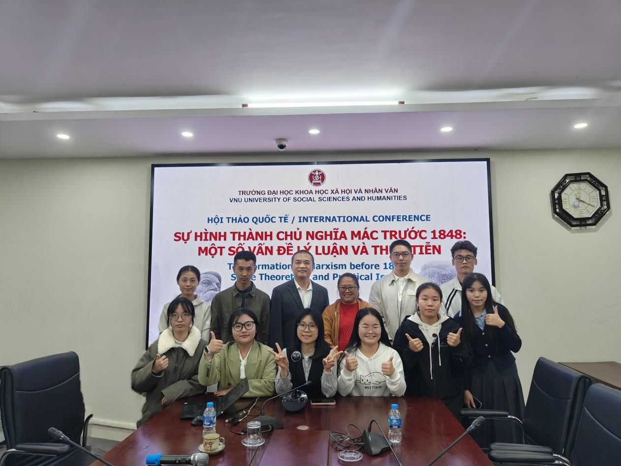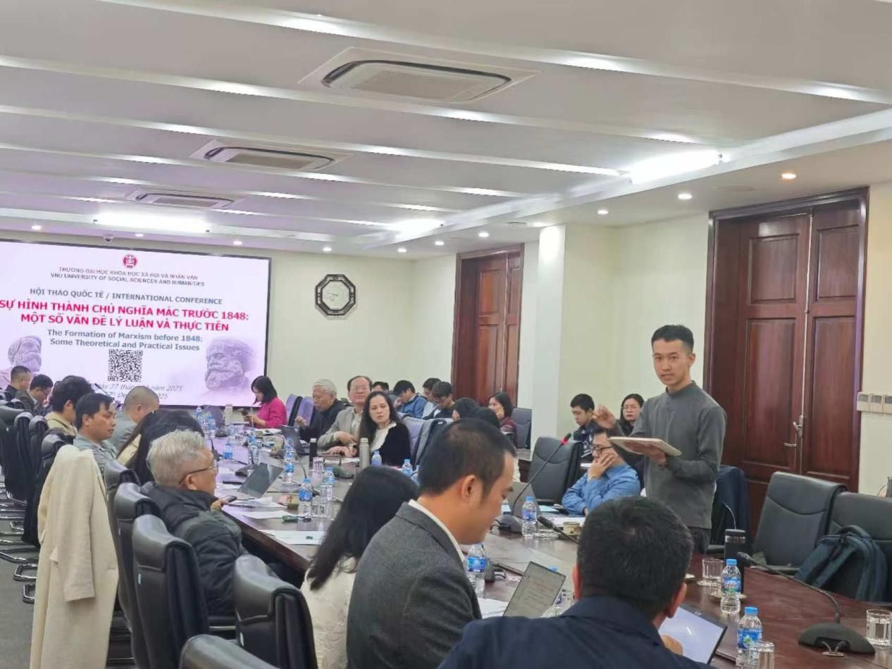 12月27日,我院赴越访学研修团参加由河内国家大学所属人文与社会科学大学举办的“1848年前的马克思主义形成:若干理论与实践问题”国际研讨会。河内国家大学所属人文与社会科学大学副校长邓氏秋香副教授、哲学系主任范黄江博士、四川大学马克思主义学院院长蒋永穆教授、重庆交通大学马克思主义学院院长张晓平教授,以及来自河内师范大学、越南社会科学翰林院、法国巴黎第八大学等多所高校和科研机构的国际学者出席本次研讨会,越南《人民报》《新河内报》等新闻媒体代表也到场进行报道。