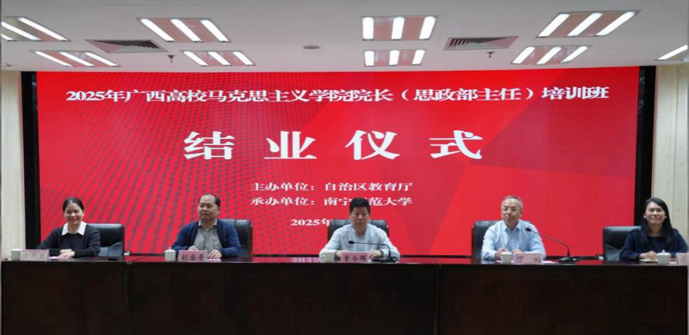 为深入学习贯彻习近平新时代中国特色社会主义思想,加强广西高校马克思主义学院建设,切实提升马克思主义学院院长(思政部主任)综合能力。近日,由广西壮族自治区教育厅主办,南宁师范大学承办的2025年广西高校马克思主义学院院长(思政部主任)培训班在柳州举办。学校党委书记张鹏参加开班仪式,开班仪式由学校党委副书记唐荣双主持。