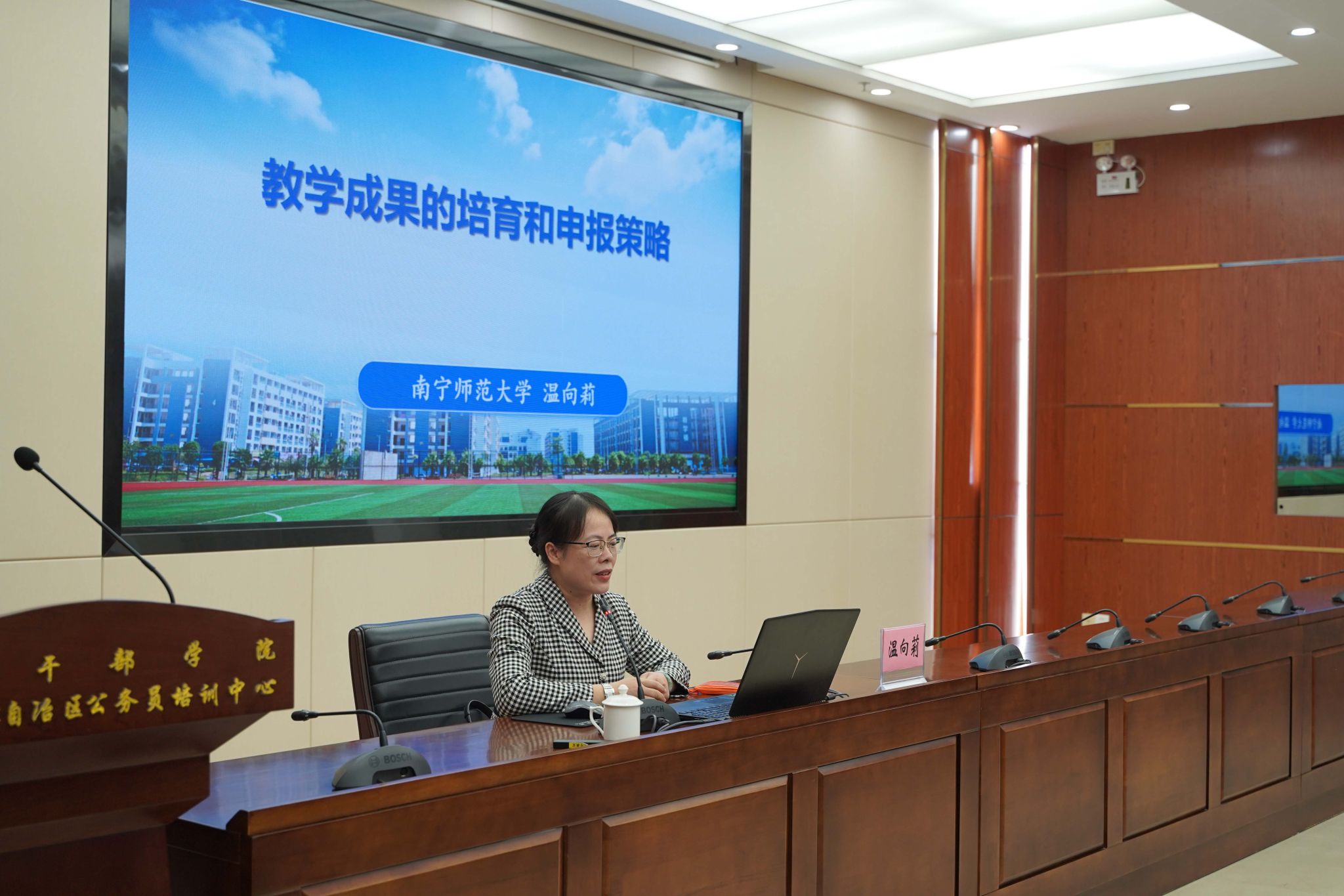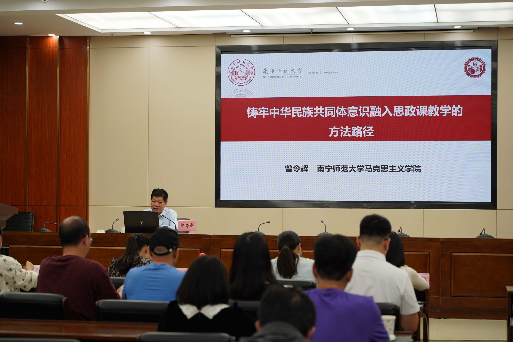 培训期间,曾令辉以《铸牢中华民族共同体意识融入思政课教学的方法路径》为题作第一专题辅导。他围绕铸牢中华民族共同体意识“为什么要融入、如何融入以及怎样融入思政课教学”这三大问题进行讲授。自治区政协经济委副主任杨丛以《广西经济社会发展形势》为题作第二专题辅导。他从学习领悟高质量发展的深刻内涵、广西推动高质量发展取得的成绩、面临的形势和重大举措四大方面进行讲授。谢丽丽以《思政课教学设计核心要素的解析与应用》为题作第三专题辅导。她围绕思政理论课好课标准、基本要求、要素分析、素材运用等方面作经验分享。南宁师范大学马克思主义学院教授、博士生导师温向莉以《教学成果的培育和申报策略》为题作第四专题辅导。她主要从了解教学成果和撰写教学成果申报书两大方面进行了详细的讲授与经验分享。在培训期间,学员们前往合浦汉代文化博物馆和金海湾红树林生态区开展“行走的思政课”现场教学,并围绕“党的二十届四中全会精神如何融入各门思政课教学”、“红树林生态区和汉文化博物馆如何作为教学资源在思政课教学中运用”、“如何在思政课中运用广西新时代伟大成就讲好思政课”、“高校思政课实践教学如何有效开展”等问题展开了研讨和交流。