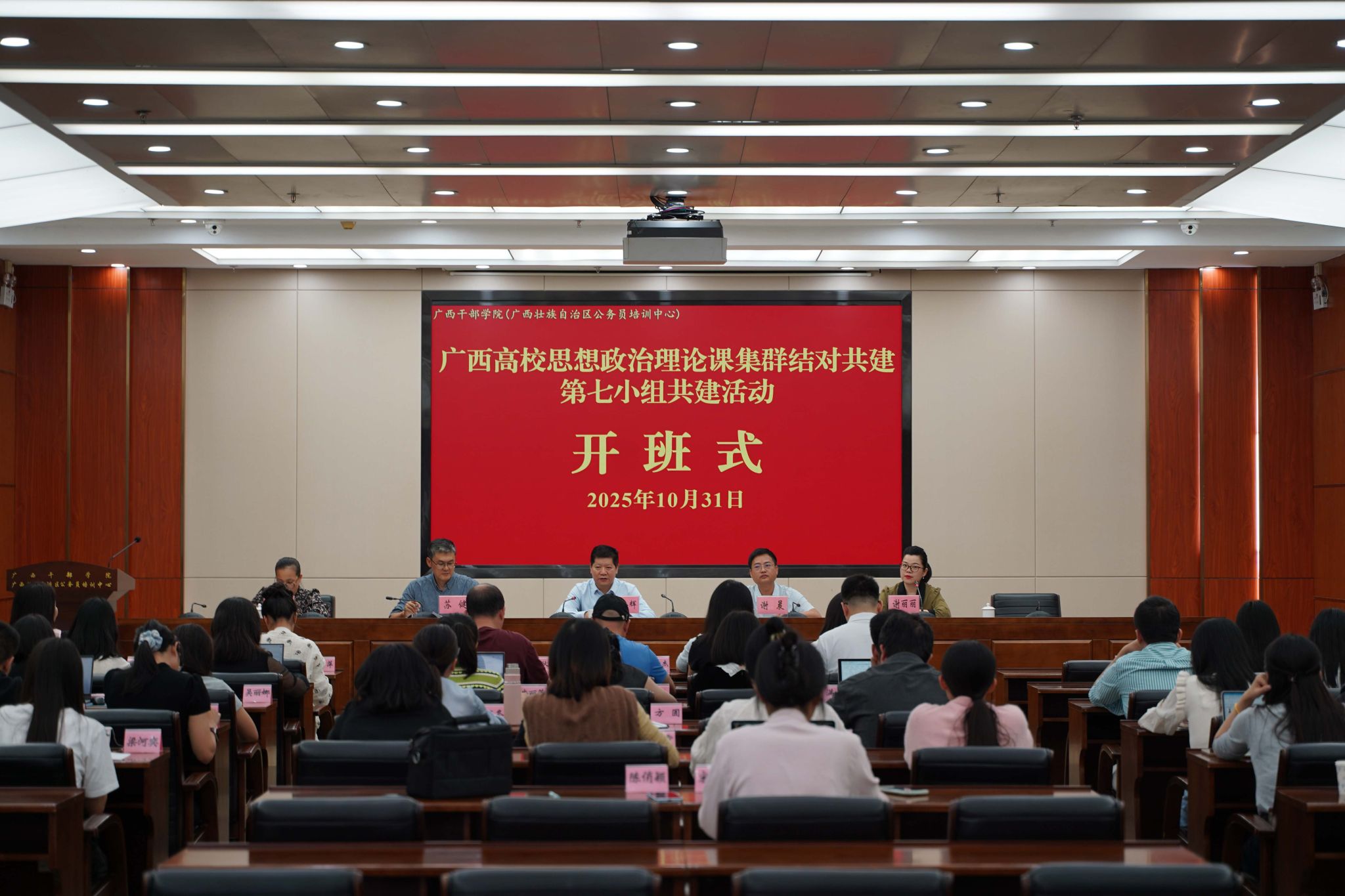 开班仪式上,南宁师范大学马克思主义学院院长曾令辉,广西干部学院副院长谢晨、广西财经学院党委副书记苏健、崇左幼儿师范高等专科学校马克思主义学院副院长吴秋玲出席了开班仪式,开班仪式由南宁师范大学马克思主义学院副院长谢丽丽主持。广西干部学院副院长谢晨进行开班致辞,南宁师范大学马克思主义学院院长曾令辉做开班动员讲话,明确了本次集群共建活动的目的、意义,并强调了相关纪律要求。